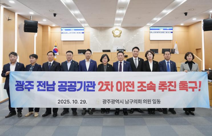 “공공기관 2차 이전은 국가균형발전 전략 ‘5극 3특’의 성패를 좌우할 핵심과제”라며, 이에 남구의회 의원 일동은 정부와 관계 당국에 ▲구체적이고 명확한 공공기관 이전 가이드라인 조속 마련 ▲광주․전남 전략 산업과 연계된 기관 배치 ▲광주·전남의 초광역 협력을 기반으로 한 성공적인 이전 추진을 강력히 촉구했다.