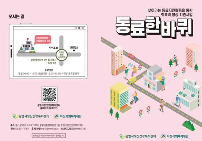 ‘동료 한 바퀴’는 아산사회복지재단 지원으로 추진 중인 찾아가는 동료지원활동으로, 정신건강의 어려움으로 사회에서 고립된 주민을 찾아가 회복 경험이 있는 동료지원 당사자가 정서적 지지와 사회참여를 돕는 사업이다.