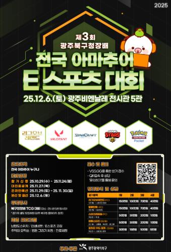 ![]() 북구, ‘제3회 북구청장배 아마추어 e스포츠 대회’ 개최...전국 게임 고수 다 모여라! |