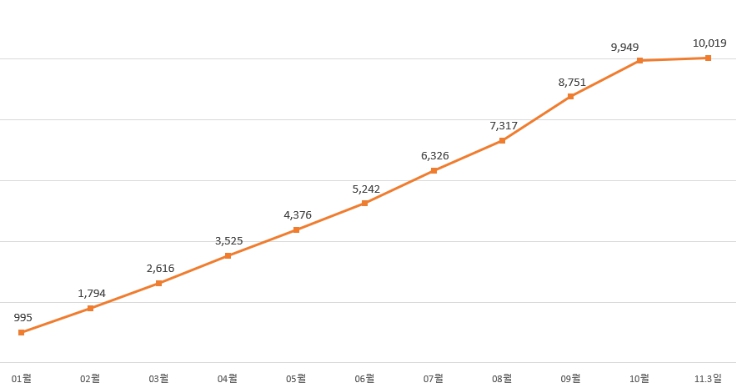 거래 동향을 살펴보면 일평균 거래 금액이 18.4억 원에서 32.6억 원으로 약 77% 상승했으며, 거래 참여업체 수 역시 작년 3,804개소에서 5,272개소로 약 39% 증가했다. 부류별로는 청과가 46.4%로 가장 많이 거래됐으며 축산 40.5%, 양곡 8.2%, 수산 4.9% 순으로 거래됐다.