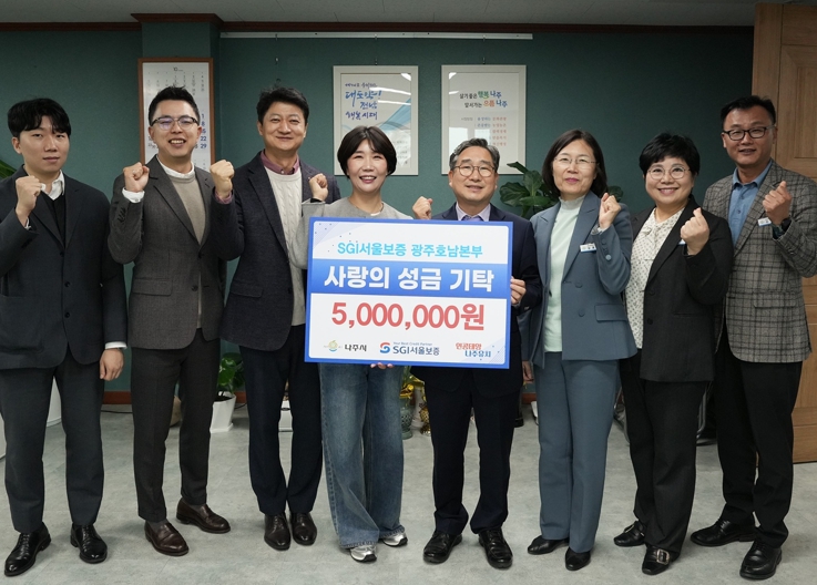 강상구 나주 부시장은 “어려운 시기에 지역 아동들을 위해 따뜻한 마음을 전해주신 SGI서울보증에 깊이 감사드린다”며 “기탁받은 성금은 시설에 소중히 전달해 아이들의 복지 향상에 보탬이 되도록 하겠다”고 화답했다.