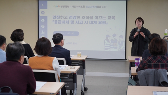 지난 3일에는 인천사서원 기관장과 부서장, 소속시설장 등 관리감독자 대상 산업안전보건교육이 열렸다.
