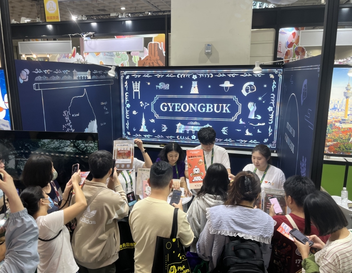 특히 한국 전통적인 자개 문양을 접목한 부스 디자인을 선보여 경북의 주요 관광 콘텐츠와 지리적 매력을 강조했으며, 문화체육관광부에서 조사한 2024 외래관광객조사에 따라 대만 방문객 선호도가 높은 미식관광(89.9%), 자연경관(59.4%) 등을 고려해 경주 황남빵과 문화유산 모양 쿠키, 경북 랜드마크 일러스트가 담긴 엽서 등 기념품을 제공해 높은 관심을 얻었다.
