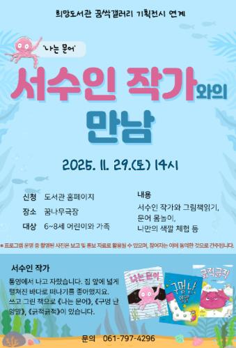 ![]() 광양희망도서관, '나는 문어' 서수인 작가와의 만남 운영 |