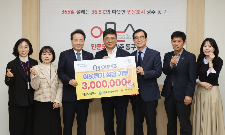 임택 동구청장은 “오랜 기간 꾸준히 나눔을 이어온 OB맥주 광주지점에 진심으로 감사드린다”면서 “소중한 성금은 겨울철 난방 취약가구 등 꼭 필요한 곳에 책임있게 지원하겠다”고 말했다.