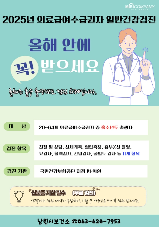 ![]() 남원시, 의료급여수급권자 무료 건강검진 |