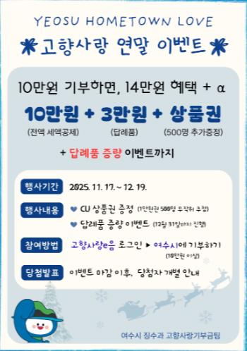 ![]() 여수시, 고향사랑기부제 연말 이벤트 진행 |