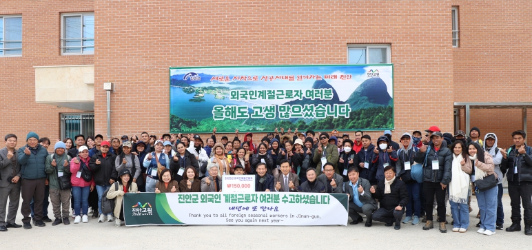 전춘성 진안군수는 “올해는 MOU 체결국과 결혼이민자 가족 초청을 통해 역대 가장 많은 771명의 계절근로자를 도입하며 농번기 인력난 해소와 급격한 인건비 상승 억제에 큰 도움이 됐다”며 “낯선 환경에서도 성실하게 일해준 근로자들에게 감사드리고, 내년에도 안정적인 인력 확보를 통해 농업현장을 지원하겠다”고 말했다.