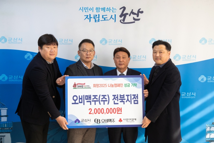 강임준 군산시장은 “매년 잊지 않고 나눔을 실천해 주시는 오비맥주㈜ 전북지점에 진심으로 감사드린다”며 “전달된 성금은 도움이 필요한 이웃들에게 소중히 쓰일 수 있도록 하겠다.”라고 말했다.