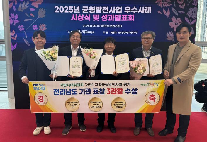 윤진호 전남도 기획조정실장은 “전국 유일의 3관왕 달성은 그동안 전남도가 일관되게 추진한 정책의 기획단계부터 사업의 집행, 운영·관리까지 전주기별 균형발전 실천의 가시적 성과”라며 “앞으로도 5극3특 중심의 초광역 협력 강화, 지역 특성 기반의 균형발전사업 추진, 주민 체감형 성과 확산을 통해 국가균형성장을 견인하는 전남으로 도약하도록 노력하겠다”고 말했다.