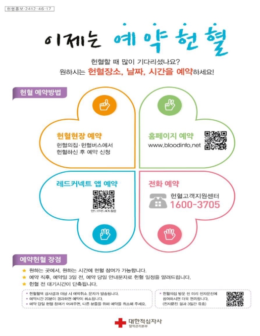 헌혈을 원하는 사람은 대한적십자사 혈액관리본부 또는 한마음혈액원 누리집에서 편리하게 사전 전자문진, 사전예약 후 가까운 헌혈의 집이나 헌혈 카페를 방문하여 헌혈에 참여할 수 있다.