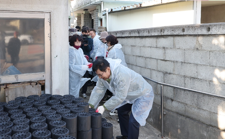 ![]() 이상익 함평군수가 연탄 나눔 봉사 모습 |