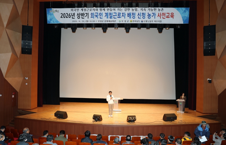 ![]() 보성군, 2026년 외국인 계절근로자 제도 신청 농가 사전 교육 실시_김철우 보성군수가 2026년 상반기 외국인 계절근로자 제도 배정 신청 농가 사전 교육에서 인사말을 하고 있다 |