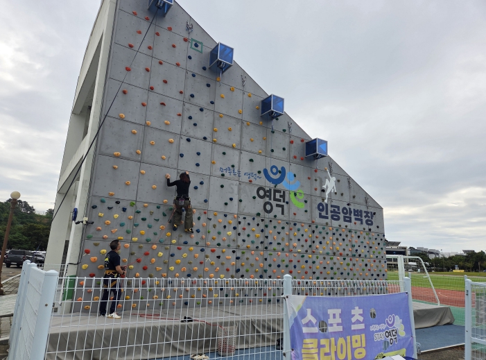 ![]() 영덕군민운동장 인공암벽장 강습 모습. |
