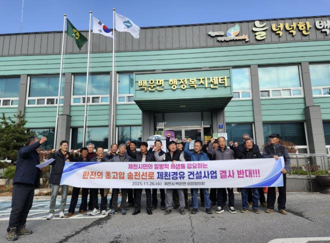 백운면 이장협의회는 “제천시민을 무시하며 추진 된 한전의 일방적인 절차는 용납할수 없고 제천은 이미 다수의 송전선로 통과, 댐건설로 인한 피해를 입은 지역”이라며 “국가사업 추진에 있어 수혜는 수도권과 대기업이 보고 피해는 고스란히 지역 주민과 농촌이 입게 되는 불합리하고 불평등한 상황이 반복되는 것에 대해 정부는 근본적 해결책을 제시하라”고 강력 촉구했다.