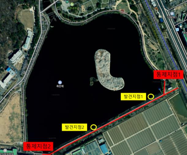 ![]() AI 확진된 큰기러기 폐사체 발견 지점. |