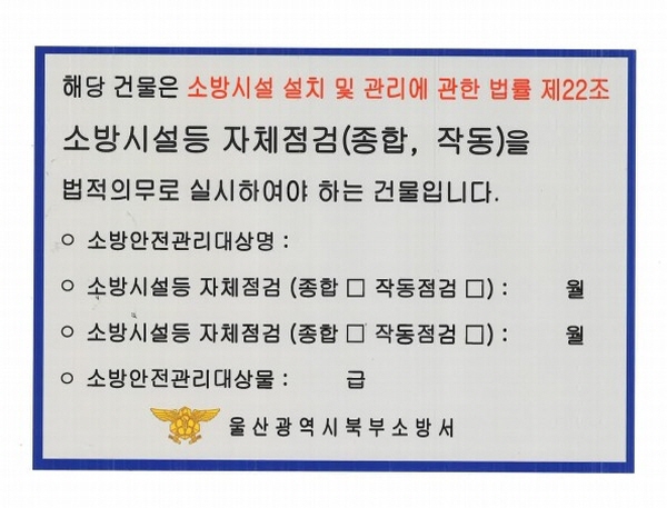 ![]() 자체점검 법적의무대상 안내 스티커 |
