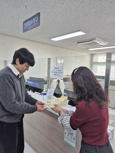 ![]() 민원담당자가 민원인에게 핫팩 제공 |