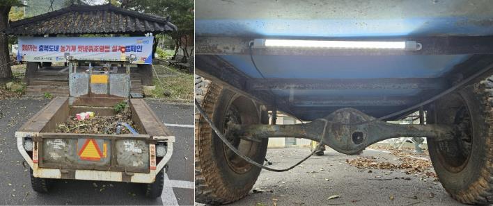 특히 하반기 농업기계 순회수리에는 한국교통안전공단 충북본부와 “농촌마을 교통안전 예방캠페인”의 일환으로 후방 추돌사고와 농기계 야간사고 예방을 위한 조명 등을 30여 대 경운기와 트랙터에 설치했다.