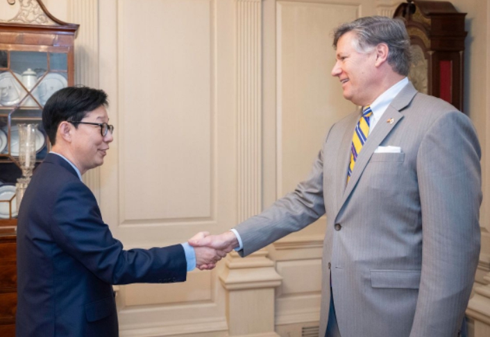 ![]() 박윤주 외교부 제1차관과 크리스토퍼 랜다우(Christopher Landau) 국무부 부장관 |
