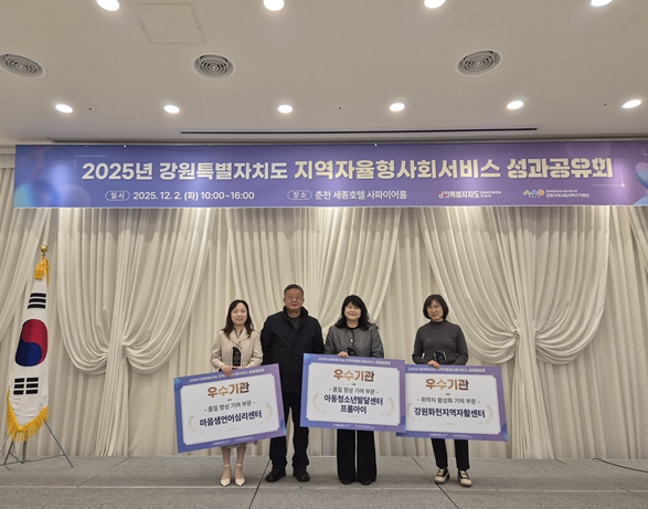 우수기관은 품질향상부문 마음샘언어심리센터, 아동청소년발달센터프롬아이, 에스엠천사가 선정됐으며, 취약지 활성화 기여부문에는 강원화천지역자활센터, 사회적협동조합마음품다가 선정됐다.
