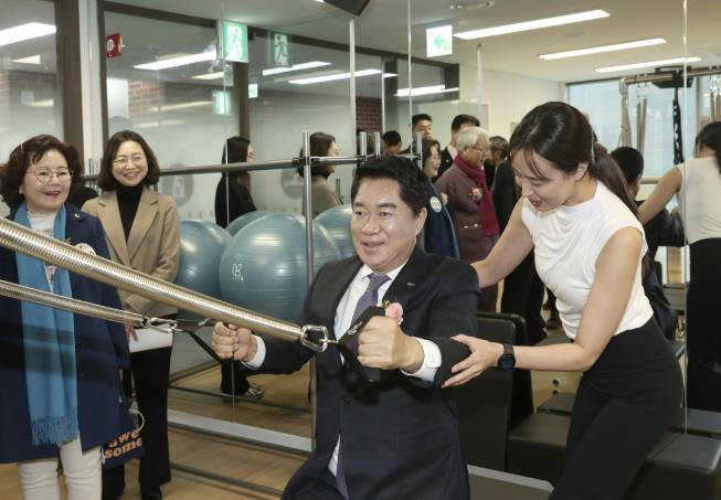 ![]() 지난달 개최된 관악더행복마루 개관식에서 기구 필라테스 체험하는 박준희 관악구청장 |
