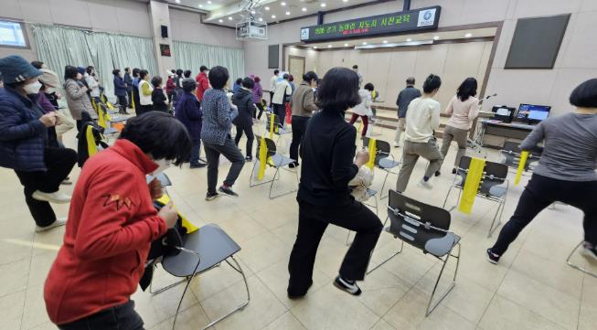 이날 교육에는 마을별 걷기동아리 지도자와 보건 관계자 등 50여 명이 참석했으며 겨울철 낙상 및 근력 감소 예방을 위한 운동법과 모바일 걷기 앱 워크온 괴산군 커뮤니티 가입 방법 등에 대한 이론과 실습이 진행됐다.