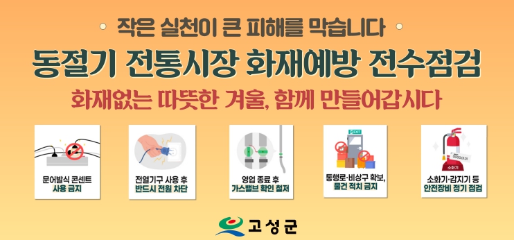 ![]() 고성군, 동절기 전통시장 화재예방 전수점검 |