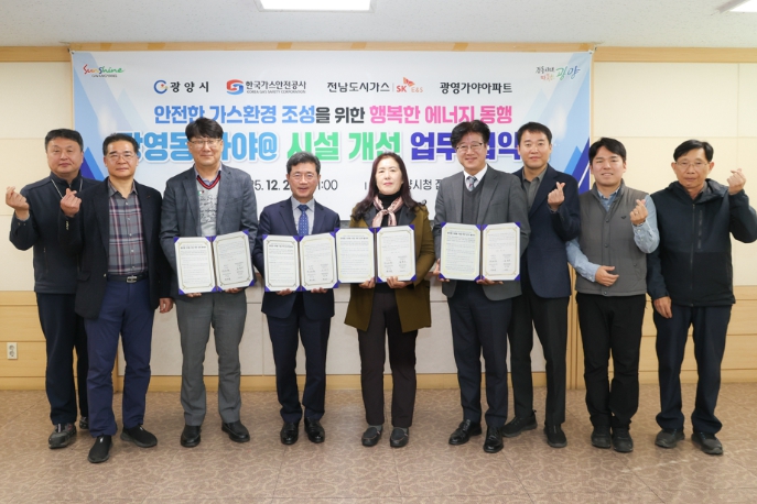 협약에 따라 광양시는 공동주택 가스 환경 개선 업무를 맡고, 한국가스안전공사 전남동부지사는 광양시의 가스안전관리 업무를 지원한다.