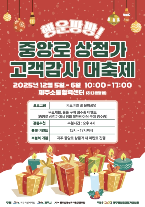 이번 행사는 중소벤처기업부 공모사업으로 선정돼 올해부터 추진 중인 ‘상권활성화사업’의 일환으로, 제주원도심활성화자율상권조합과 함께 원도심 상권인 중앙로 상점가에 활기를 불어넣기 위해 마련됐다.