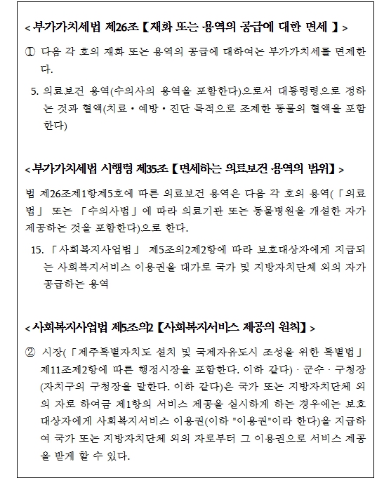 그동안 업계에서는 바우처 방식의 산모‧신생아 돌봄 서비스는 바우처를 대가로 산모에게 공급하는 용역이며, 해당 용역은 부가가치세 면세대상 용역*에 해당되므로 본인부담금 부분도 면세로 보아야 한다고 주장하며, 현장에서 과‧면세 적용 여부로 혼란을 겪음에 따라 본인부담금 부분에 대해 과세로 판단한 기존 유권해석에 대한 재검토를 지속적으로 건의해 왔다.