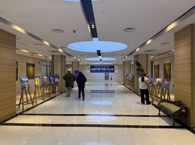 ![]() 치매가족 작품전시회 ‘힐링에 아트를 더하다’가 열리는 아주대학교 병원 별관 로비. |