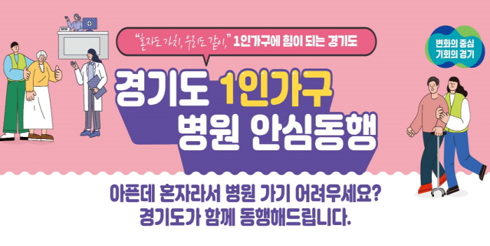 10일 경기도에 따르면 1인가구 병원안심동행은 병원 예약부터 접수·수납, 진료 동행, 귀가까지 1인가구라면 누구나 필요할 때 이용할 수 있는 생활밀착형 지원 서비스다. 2023년 제정된 ‘경기도 1인가구의 기본 조례’에 따라 추진되고 있다.