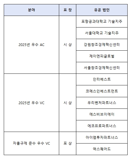 이번 행사는 초기창업기업 성장에 기여한 창업기획자(AC), 경영건전성이 우수한 벤처투자회사(VC), 자율규제를 성실히 준수한 벤처투자회사(VC)에 표창을 수여하고, 스타트업에 후속투자 기회를 제공하기 위해 추진됐다.