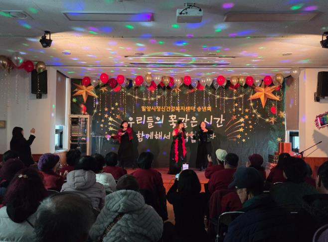 ![]() 12일 밀양시보건소 강당에서 2025년 정신건강복지센터 송년회 행사를 하고 있다. |