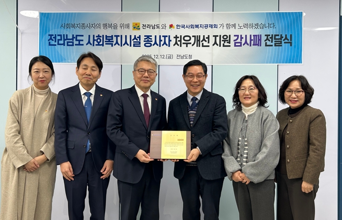 김용하 한국사회복지공제회 이사장은 “전남도가 2022년부터 사회복지시설 종사자들을 위해 꾸준히 노력해 온 점이 사회복지 현장의 큰 희망이 되고 있다”며 “이에 감사의 마음을 담아 감사패를 전달한다”고 말했다.