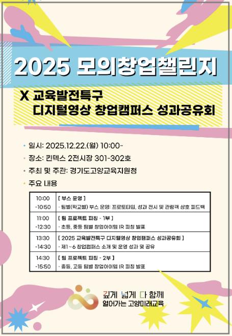 고양교육지원청은 이번 모의창업챌린지를 계기로, 디지털영상창업캠퍼스를 중심으로 한 창업교육 성과를 지역사회와 적극 공유하고, 학생 주도·지역 연계 창업교육을 지속적으로 확산해 나갈 계획이다.