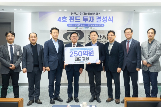 김석필 천안시장 권한대행 부시장은 “4호 펀드 결성은 천안시가 국가전략기술산업이라는 미래 성장 분야로 도약하기 위한 중요한 출발점”이라며 “지속적인 투자 생태계 조성을 통해 미래 산업을 선도하는 창업 도시로 성장하겠다”고 말했다.