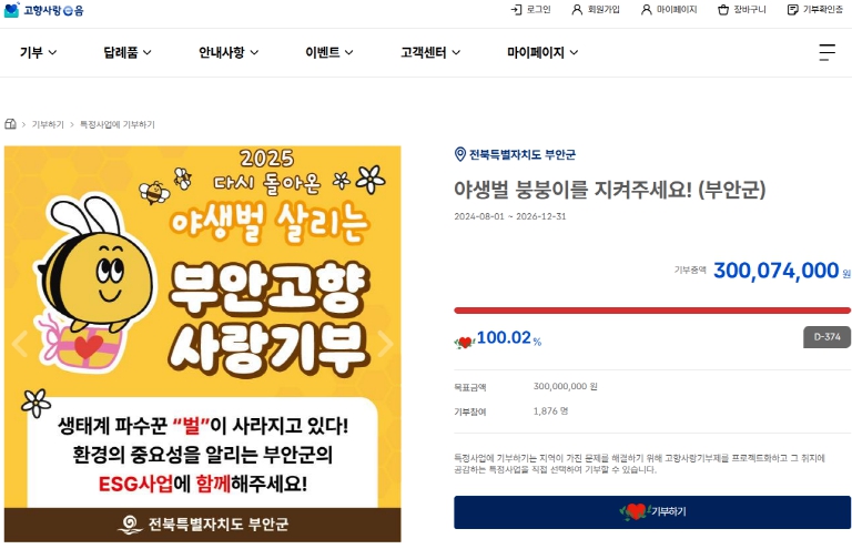 ![]() 부안군, 고향사랑기부제 지정기부 ESG 사업, 목표액 3억원 달성 |