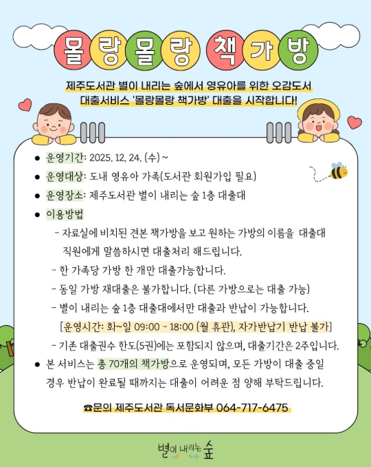 ![]() 영유아 오감도서 대출서비스 ‘몰랑몰랑 책가방’ 안내문 |