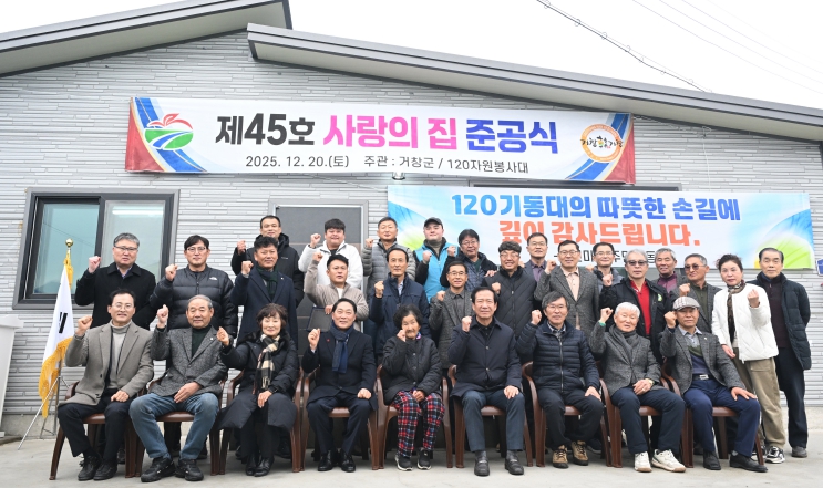 한편, 사랑의 집짓기 사업은 주거환경 개선이 시급한 사회적 약자를 지원하기 위해 2002년부터 추진해 온 사업으로, 이번 제45호 사랑의 집은 거창군의 재료비 지원과 한국국토정보공사의 무료 측량 서비스, 동광건축사사무소(대표 표재웅)의 설계 지원, 그리고 120자원봉사대의 재능기부로 완공됐다.