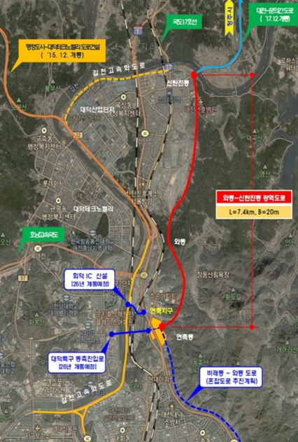 ![]() 와동~신탄진동 도로개설 노선 |