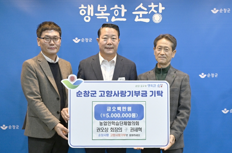 충청남도 당진시에서 당진잘보는내과의원을 운영 중인 권세혁 원장은 순창군 농업인학습단체협의회 권오상 회장의 아들로, 권 회장의 지역 농업 발전과 공동체 활성화를 위한 노력에 공감해 이번 고향사랑기부에 동참한 것으로 알려졌다.