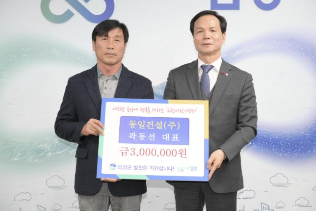 ![]() 곽동선 동일건설㈜ 대표, 음성군에 고향사랑기부 300만원 전달 |