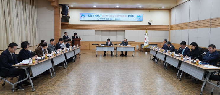 ![]() 여수시는 지난 19일 시청 회의실에서 ‘제2기 여수시 지속가능발전위원회’를 출범하고 하반기 정기회의를 개최했다. |