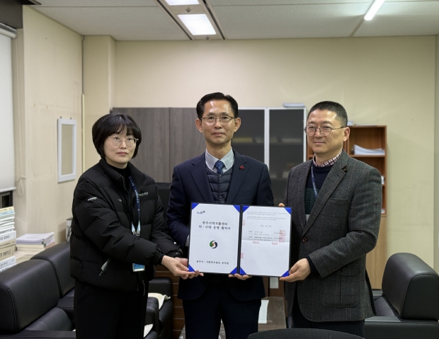 ![]() 충주시·사회복지법인 숭덕원 지역자활센터 재위탁 협약(왼쪽부터 변현정 숭덕원 법인 팀장, 변근세 충주시복지국장, 김기용 숭덕원 충주지역자활센터장) |
