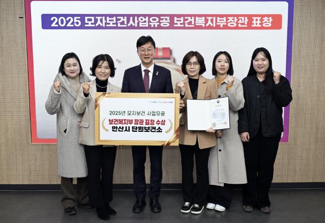 ![]() 이민근 안산시장(사진 가운데)과 안산시 관계자들이 2025년 모자보건사업유공 보건복지부장관 표창을 수상하고 기념촬영을 하고 있다. |
