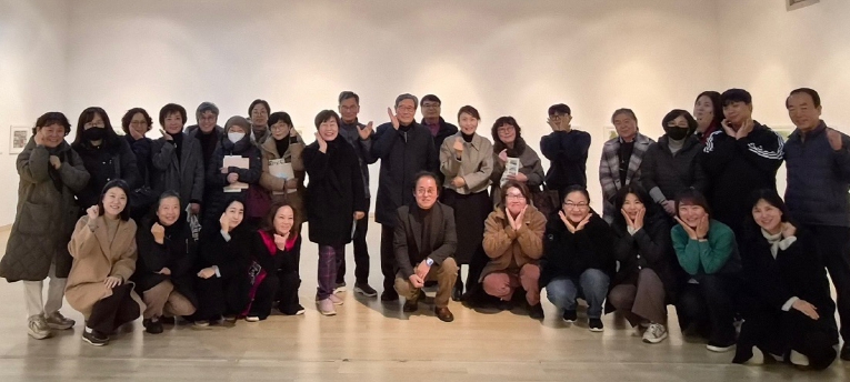 ![]() 강진아트홀에서 열린 강진군 도서관 수채화 아카데미 개막식 참석자들이 한 자리에 모였다. |