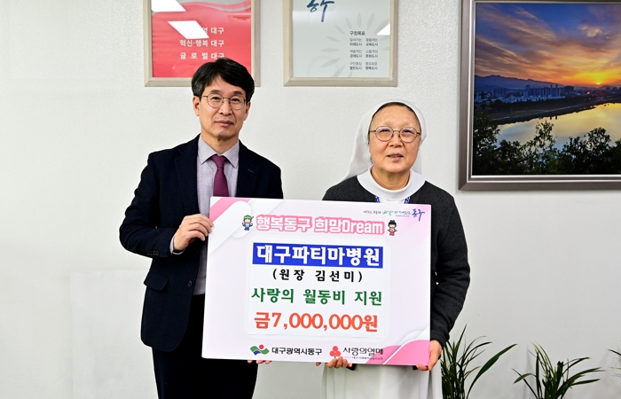 윤석준 동구청장은 “매년 변함없이 나눔을 실천하며 지역사회에 따뜻한 온기를 전해 주시는 대구파티마병원에 깊이 감사드린다”며 “기탁된 월동비는 도움이 필요한 이웃들에게 소중히 전달하겠다”고 했다.