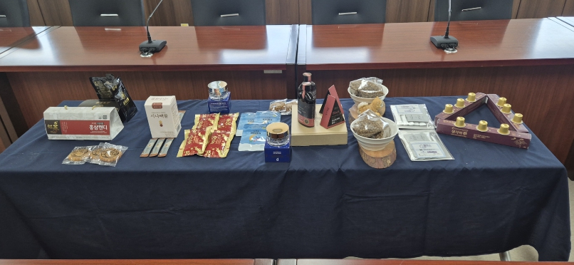 ![]() 지난 23일 금산인삼약초산업진흥원에서 열린 지역식품표준화사업 연구 성과 활용 관리 및 신규 사업 추진보고회 및 개발 제품들 |